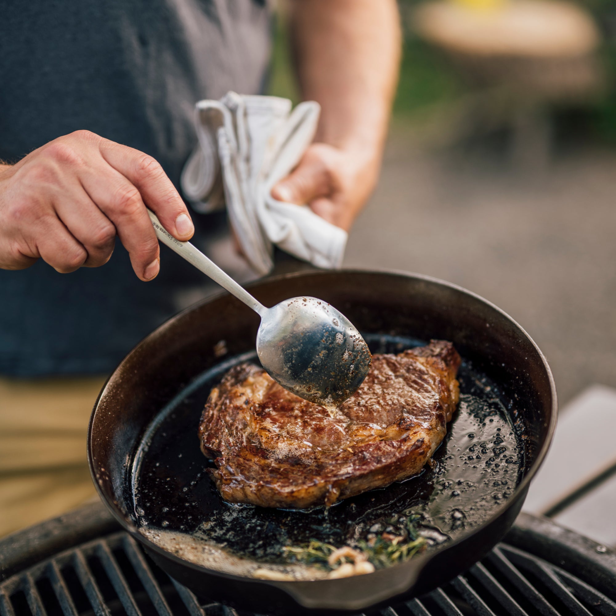 Dry your cast iron, then apply a thin coat of Seasoning Oil to all surfaces—including the side walls and bottom.