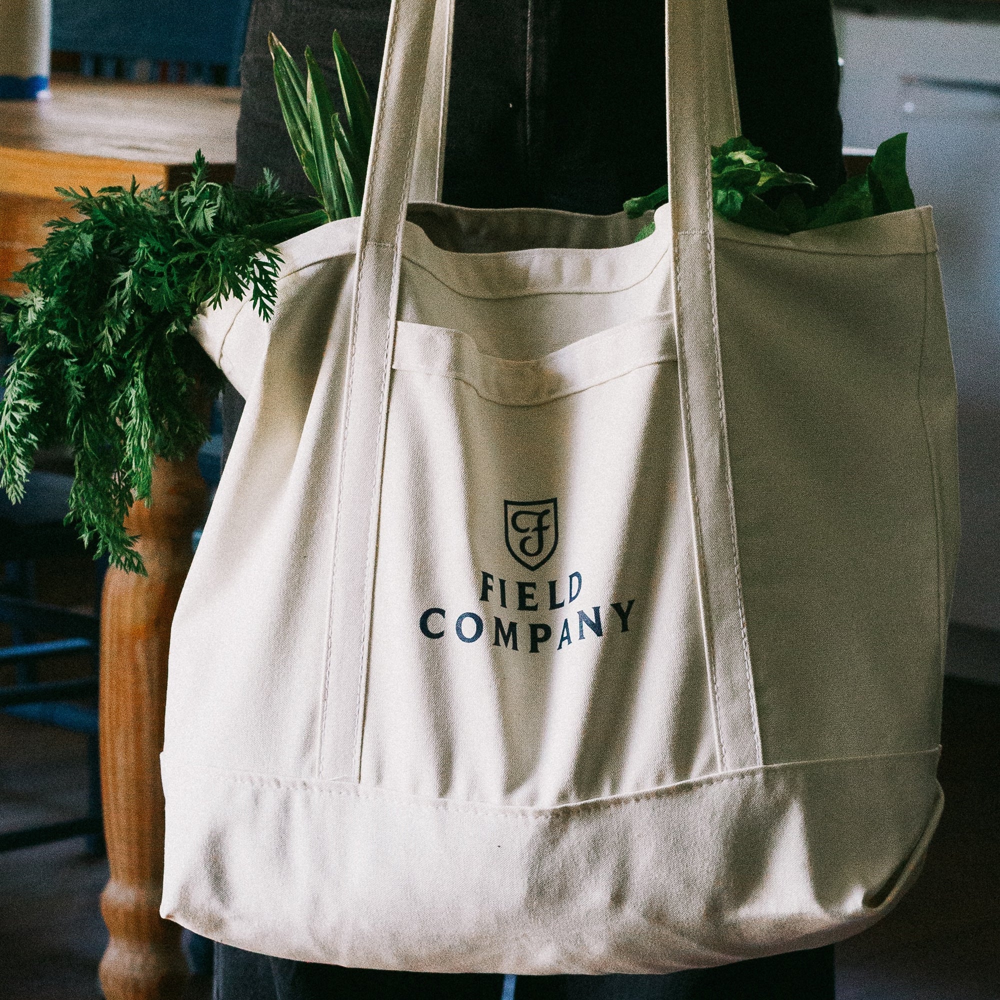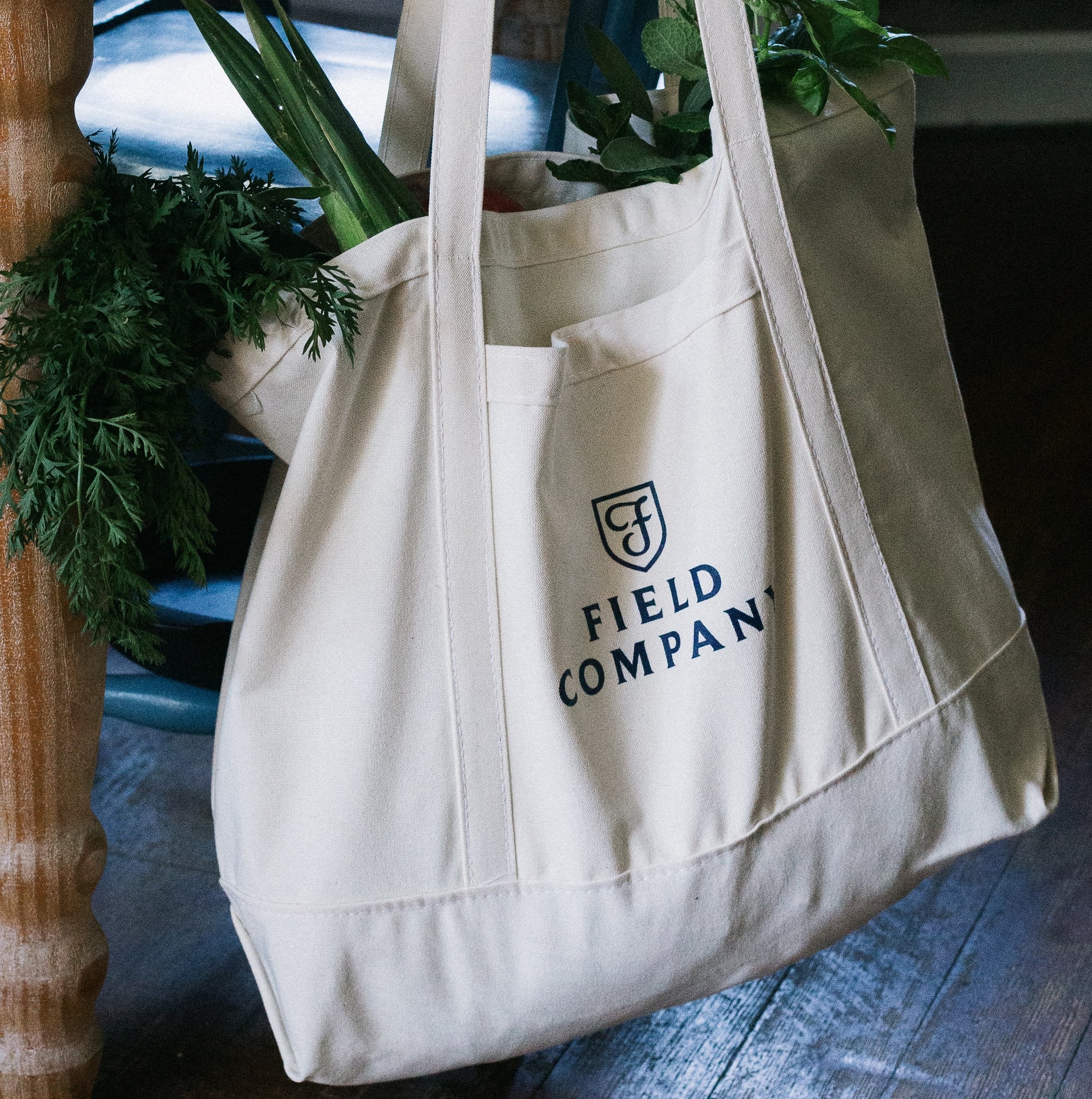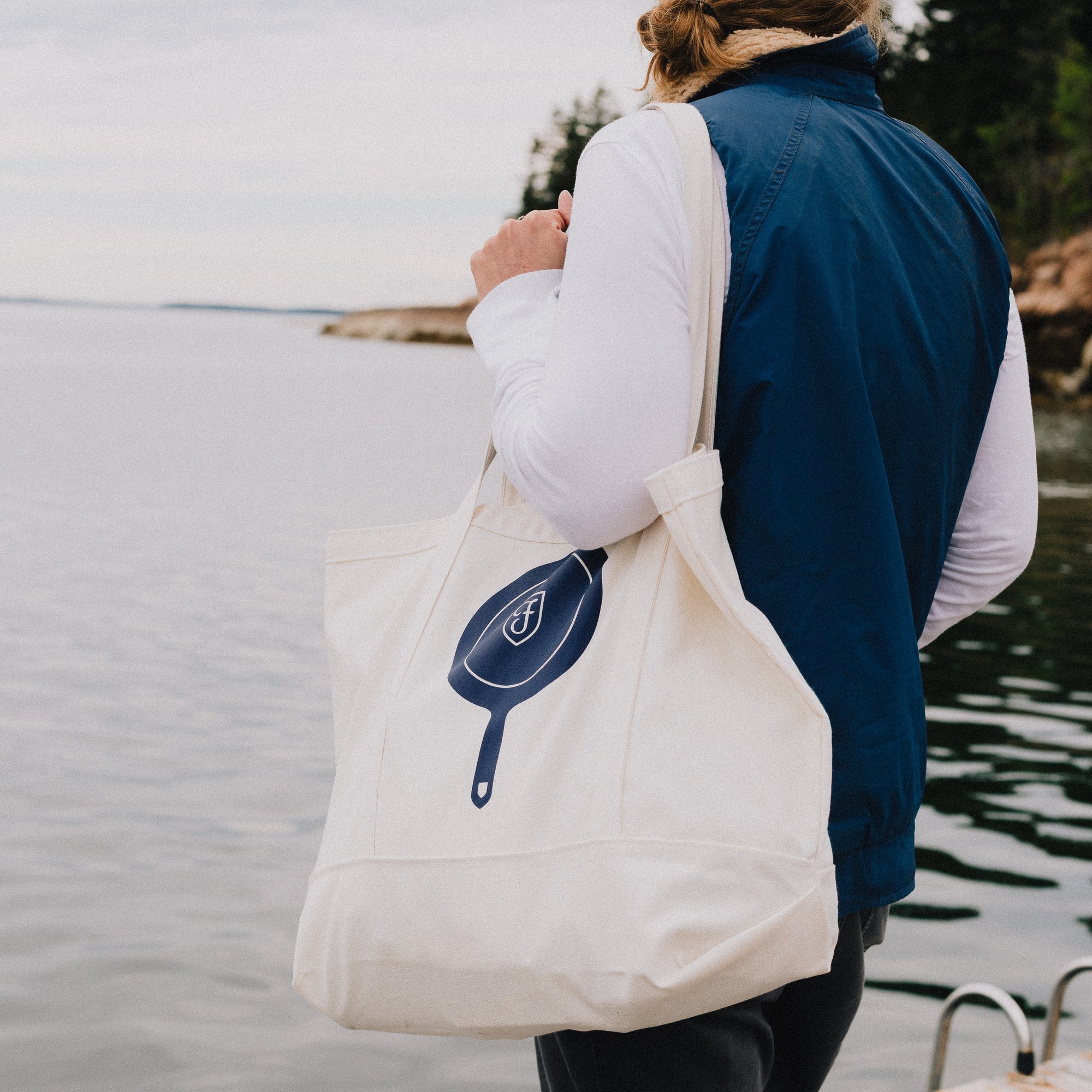 The upgraded Field Market Tote is built to last for the long haul: larger, sturdier, and able to comfortably carry the largest Field Skillets (No.16!) alongside your farmers market finds.